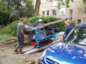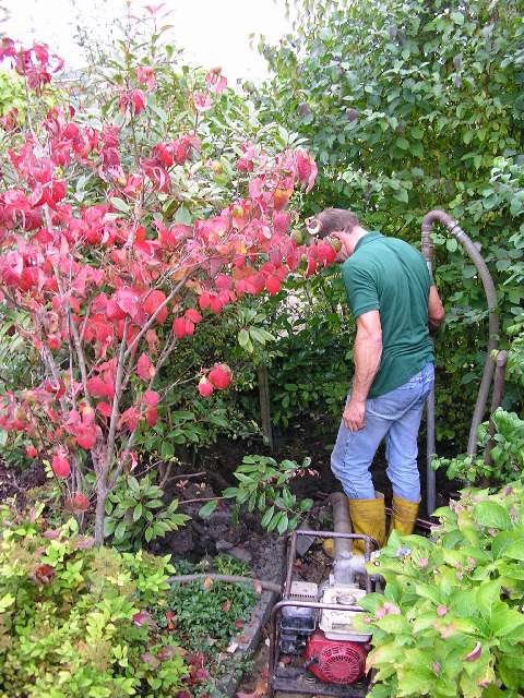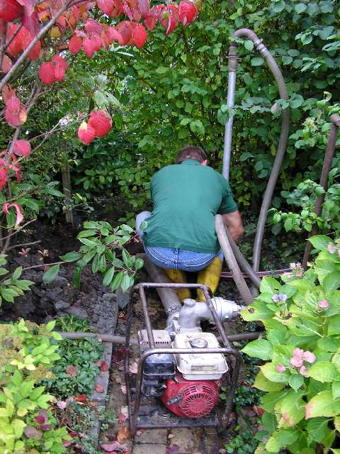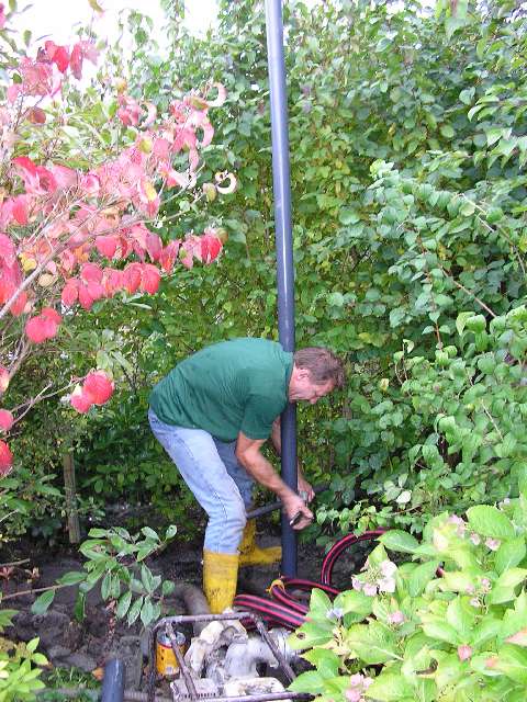 Dat een bron vaak aangelegd wordt nadat de hele tuin al klaar is (en vaak voorzien van een omheining) is voor ons meestal geen probleem. Onze apparatuur is eenvoudig mee te nemen en ter plekke snel op te bouwen.
